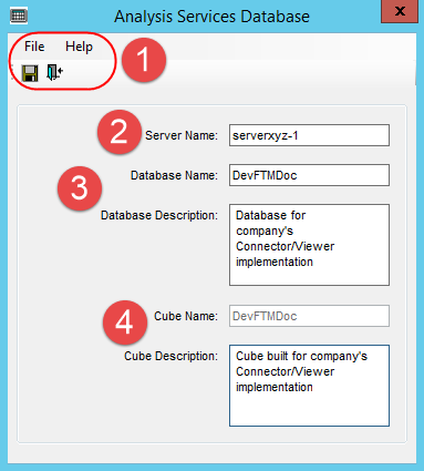 Database Name and Database Description - Enter an Analysis Services database name. Choose a unique and meaningful name that will let you easily identify this database from other Analysis Services databases on the server and help you easily see which implementation of Stratum.Connector for Viewer and Stratum.Viewer to which it pertains. Entering a description is optional. |