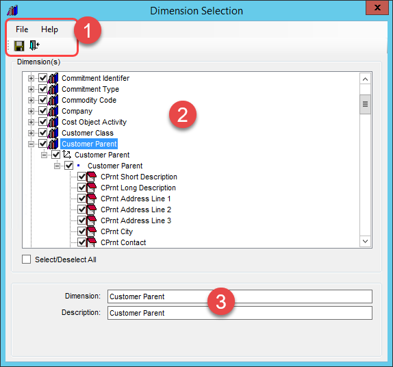 - Use this section to select or de-select the dimensions and related