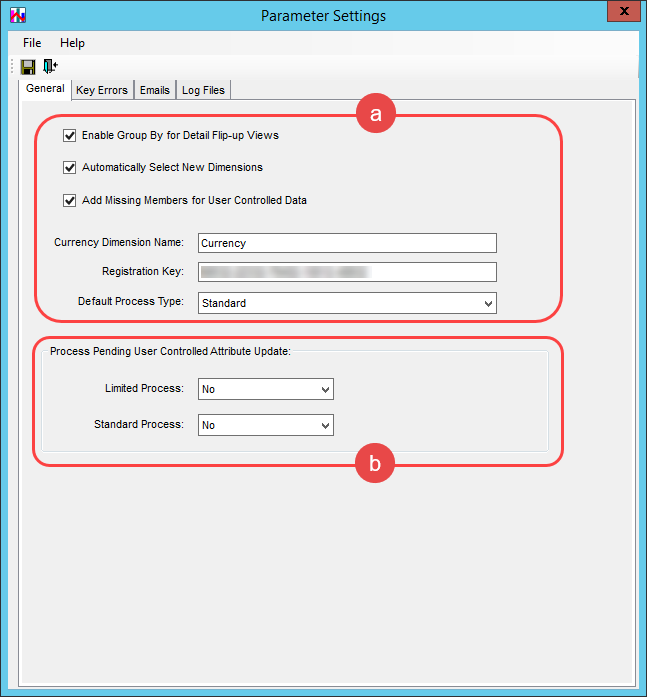 Use this tab to control whether or not Stratum.Connector will stop processing the Analysis Services database if key errors occur during processing. A key error occurs when Stratum.Connector finds a dimension value (members) in the Stratum.Server database for which no Master File information exists.