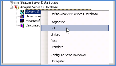 Here is a high level look at the steps for initially setting up your Stratum.Connector Analysis Services database and cube. Before you proceed with this set up and perform an initial process of the database and cube, you need to make sure that Stratum.Server master file commands have been run and an OLAP parameter/switch has been enabled. See Run Master File Commands and Enable OLAP Parameter/Switch.