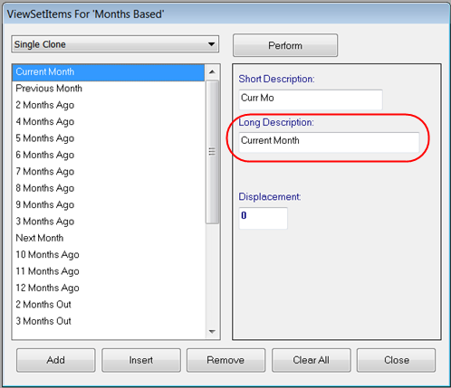 Here are the related long descriptions from Year Based and Months Based ViewSetItems in Stratum.Planner. The corresponding absolute ViewSetItems are the ones shown earlier in this section.