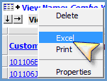 1. Right-click the view name in the grid and select Excel from the pop-up menu.
