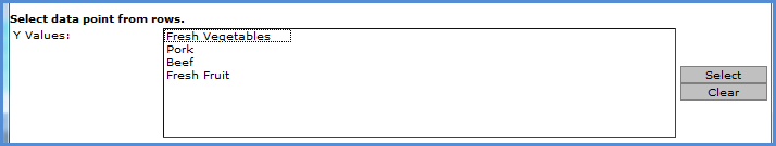 Y-Values - Displays the static data points for the chart. To add new data points, click Select within the Chart Data Wizard window, and the selected members or measure items display in this area.