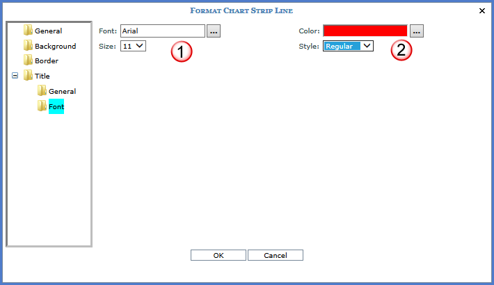 the strip line caption font. The Browse button Style - Choose whether the strip line caption is bold, italic, underline, or regular font. |