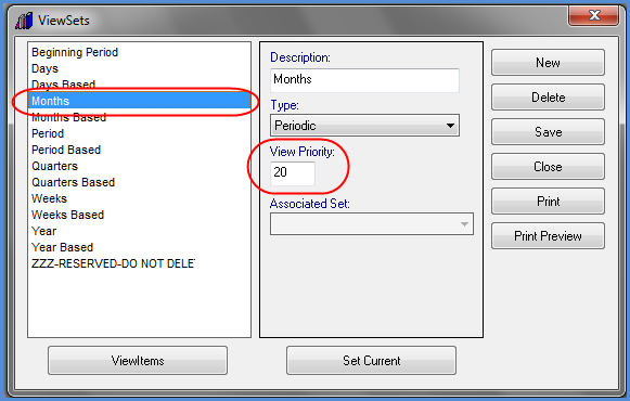 The Months ViewSet has the lowest priority. Therefore, it appears first in the list and is also the default time unit for Actual Sales measures.