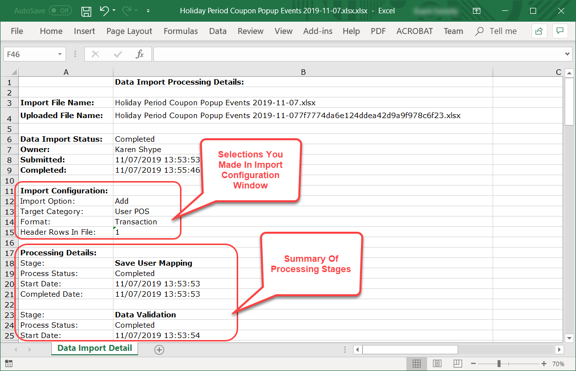 See Processing Details For A Data Import