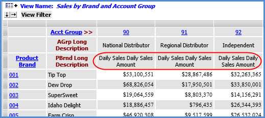 Next are some examples of caption expressions that were set up for the measure item and what each executed caption looked like in the view. Variables are the parts of the expressions that have brackets [ ] around them.