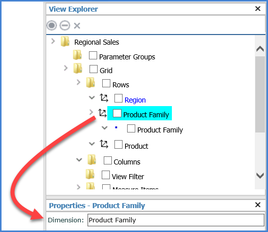 in the rows for the grid. The hierarchy belongs to a Product Family dimension,
