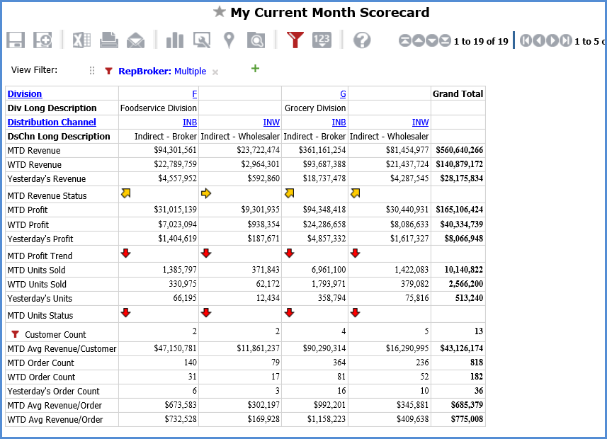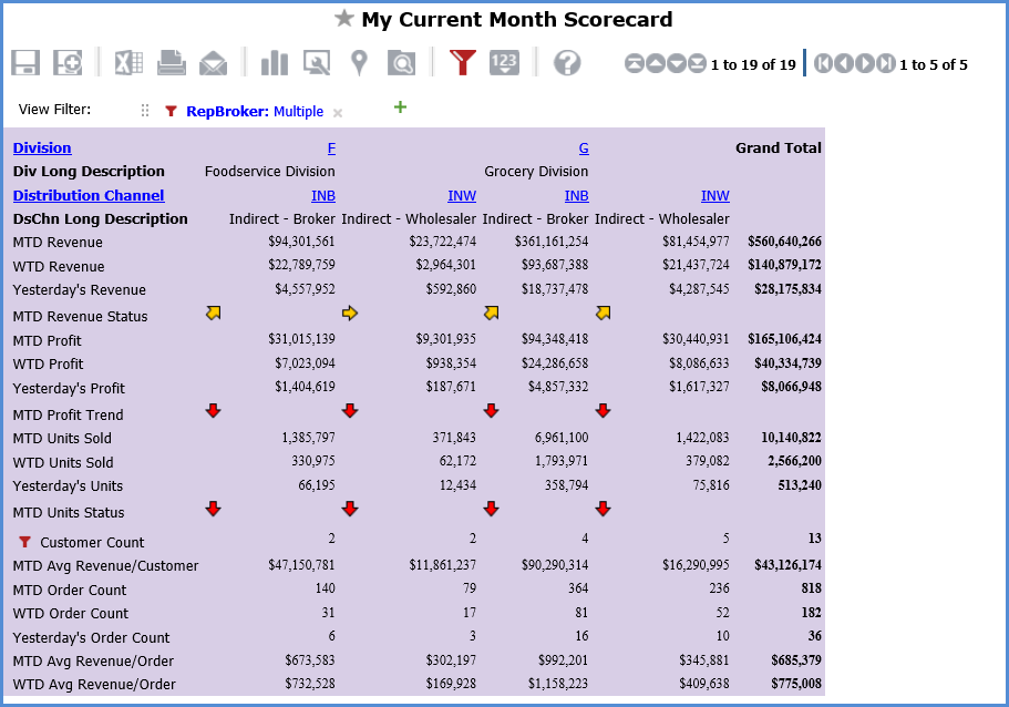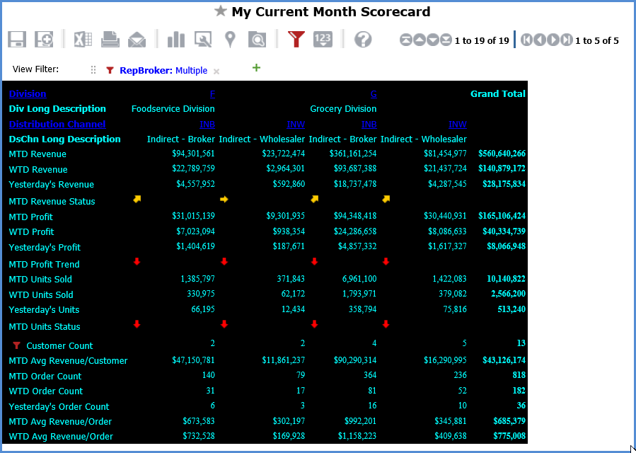 This view uses the same color for the Border, Base, Alternating Row, and Total Row Colors. A larger size font has been used for data captions compare to data values.