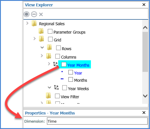 A time hierarchy is a hierarchy from the Time dimension. The Time dimension, its hierarchies, and its levels are a means of organizing the years and time periods (for example, days, weeks, months, and quarters) that will be available for use in setting up views. Stratum.Connector creates the Time dimension, its hierarchies, and levels based on the Stratum.Server ViewGroups and View Sets associated with the measure groups selected for your Analysis Services database.