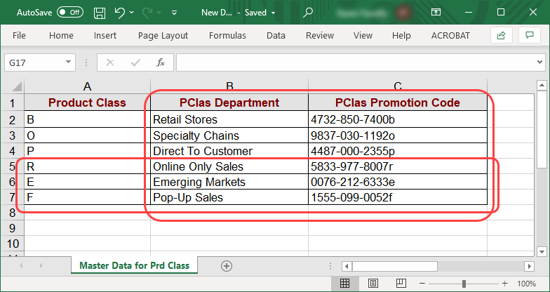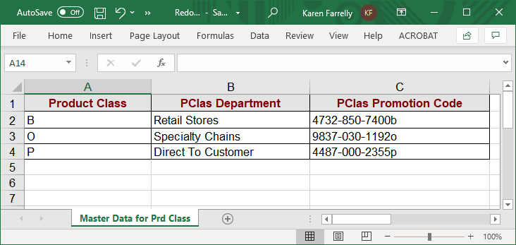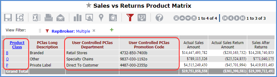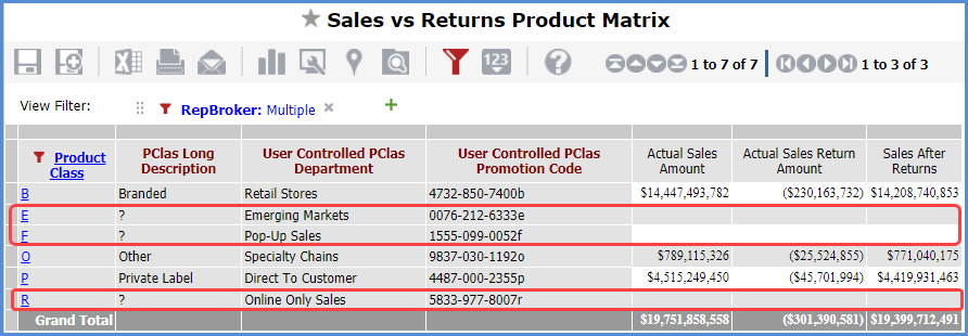Here’s the view after the Replace was carried out. Only the desired Product Classes B, O, and P show up. Their User Controlled Attributes show the imported data. The unwanted key values R, E, and F were removed.