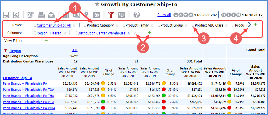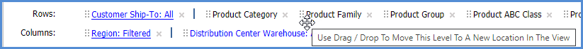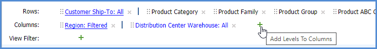 Active and Available Levels – The Rows and Columns section show all levels in the view.