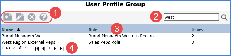 Display Columns - Sort and drag or drop columns to rearrange the window information. Selecting User Profile Groups - Double-click a group to open it for editing. When editing or deleting a group, select it from the list window and then click the applicable Edit or Delete icon. |