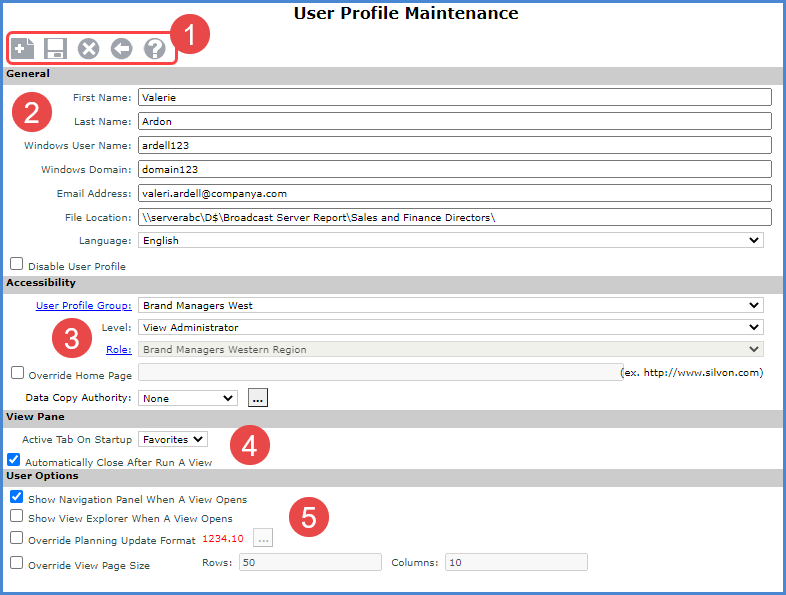 User, Casual, Advanced, View Administrator, and Security Administrator.