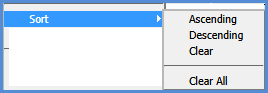 Sort - Sort options are Ascending, Descending, Clear, and Clear All.