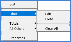 Right-click the View Filter heading to display actions that you can take related to that object or section of the grid, such as filtering levels in that section.