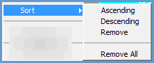 Sort - Sort options are Ascending, Descending, Remove, and Remove All.