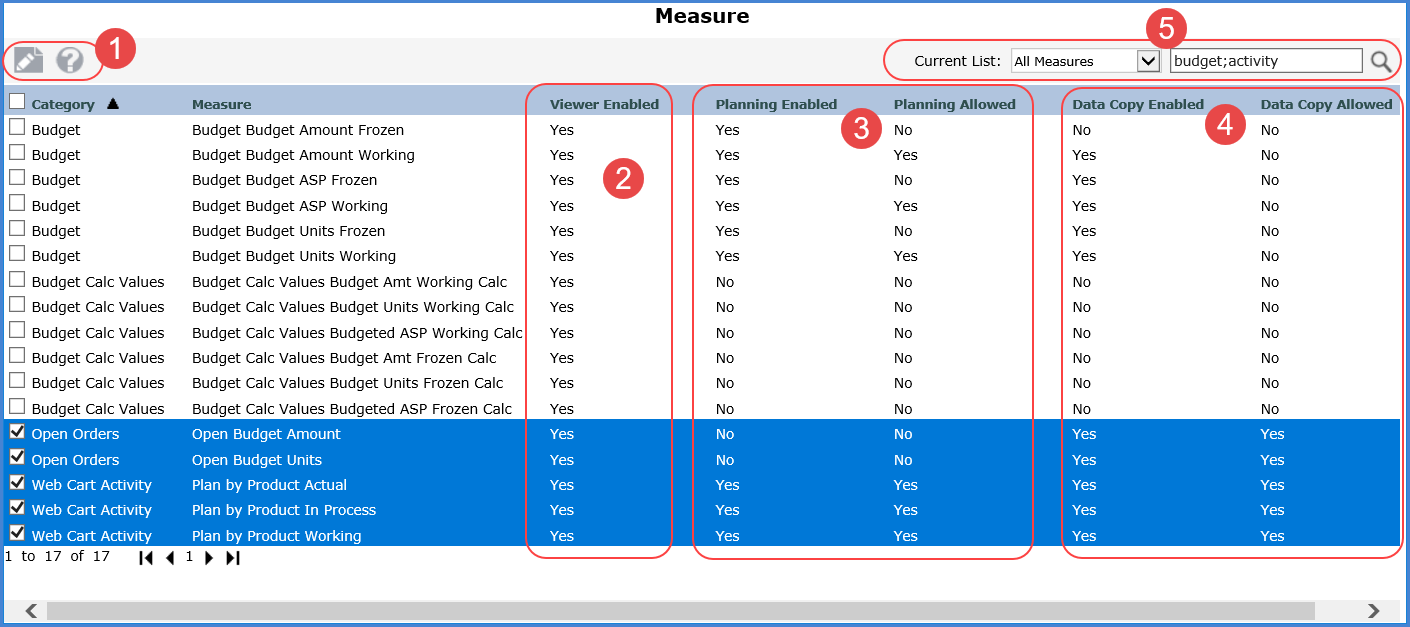 Planning views. A measure must have a Planning Enabled status