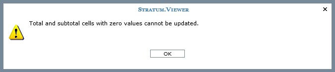 For example, if you attempt to change subtotal or total cells with blank or zero values, the following message displays.
